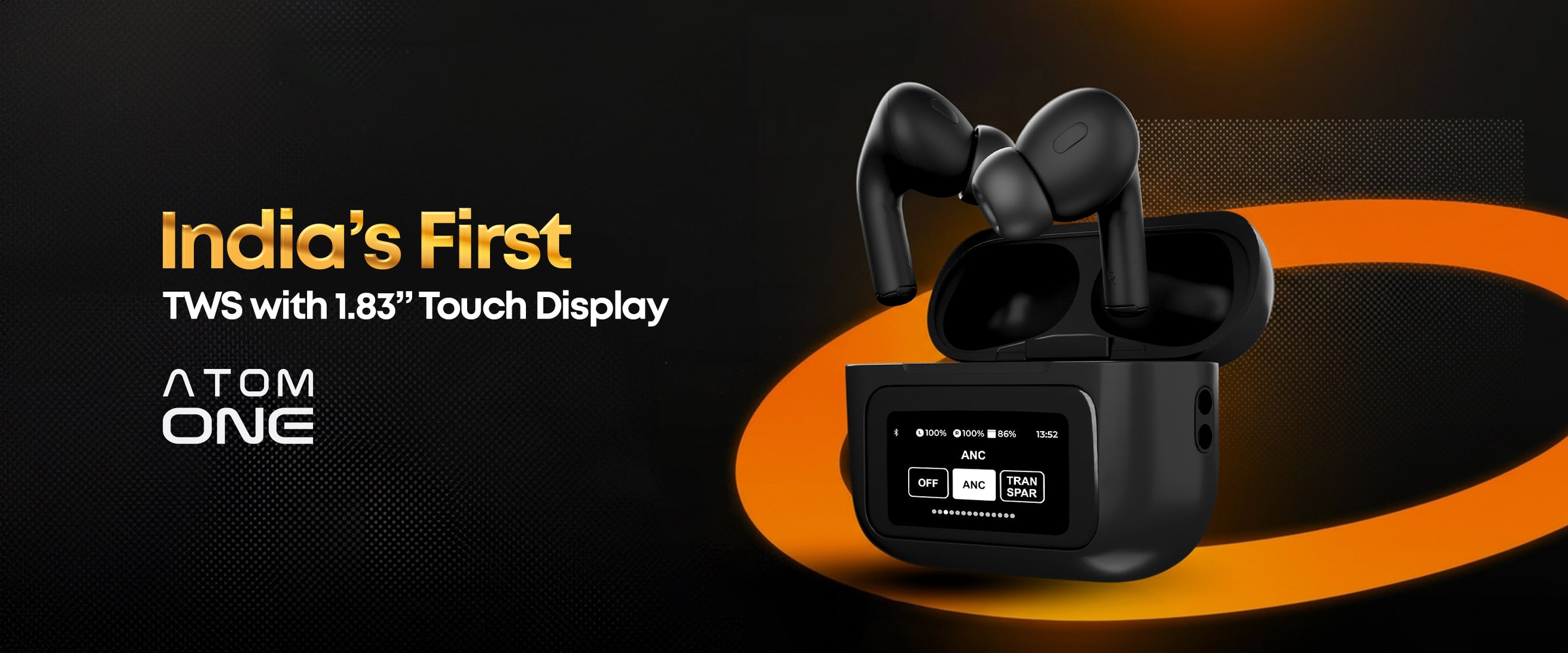 Atom One – Touchscreen ANC TWS with ENC Mic, BT 5.4 & 38H Battery (IPX5).